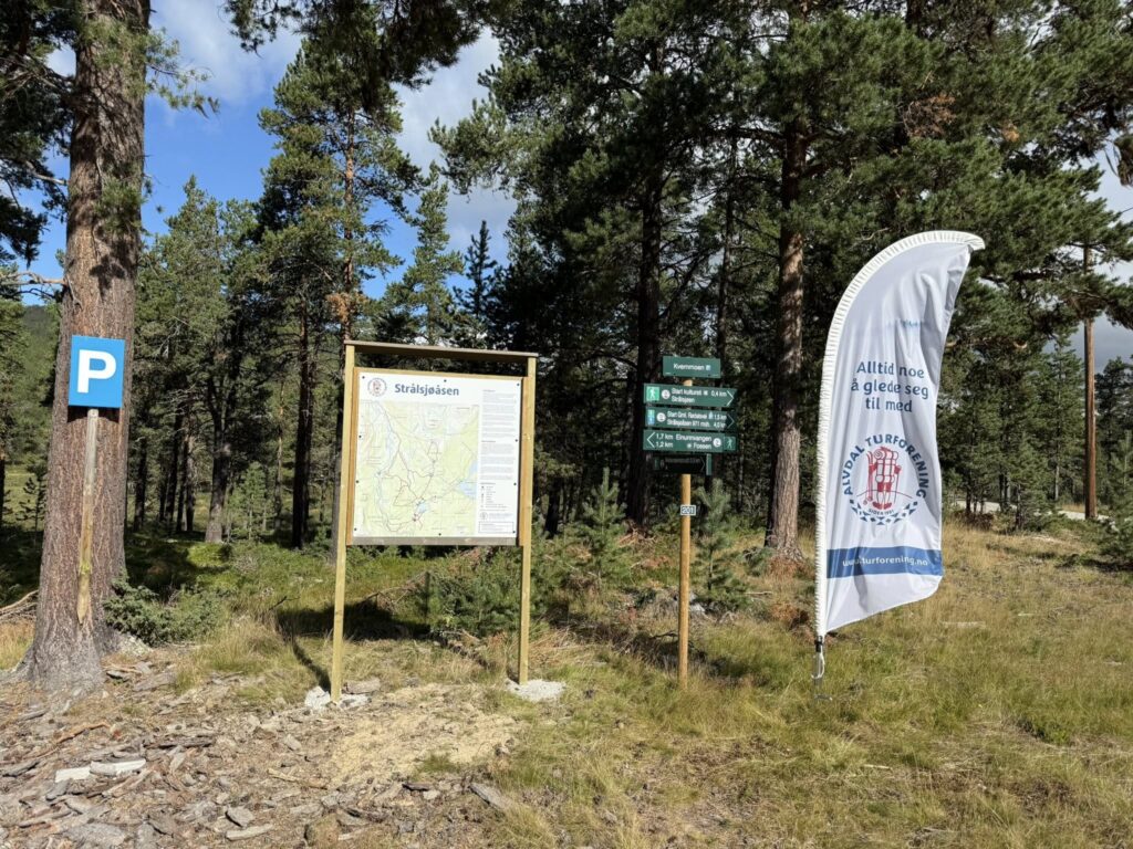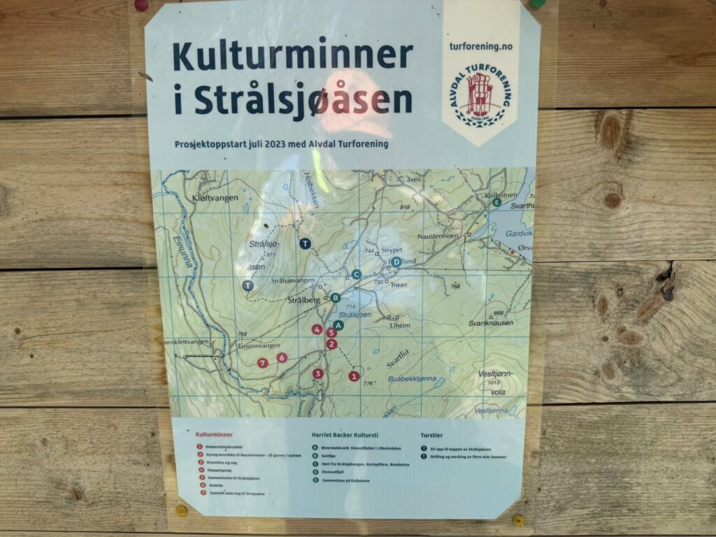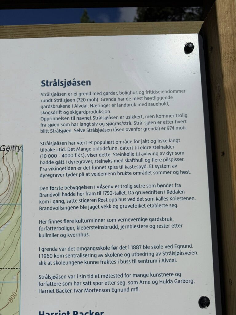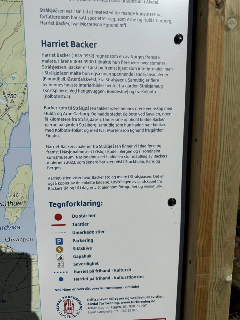 Det er også bygget en P – plass i Strålsjøåsveien ved Strålsjøhaug for alle som vil gå gamle Rødalsveg og til toppen av Strålsjøåsen! Kulturstien maleren Harriet Backer omfattes også av prosjektet med flere poster i området, se karttavlene![]()