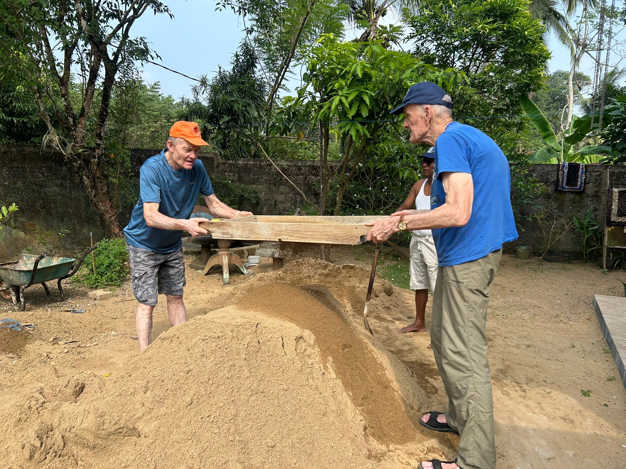 Arnfinn og Oddbjørn ligger ikke på latsiden under oppholdet på 4 uker. Området der Badrani kommer ble råket av et enormt regnskyll og syklon i november, det kom bl.a. 350 mm regn i løpet av 1 døgn. Veier og mange hus ble ødelagt av vannet. Mye av områdene som produserer te (stor og viktig eksport) ble ødelagt. Produksjon Sri lanka har ikke Statens Naturskadefond eller noen form for forsikringer som vi har i Norge. Dårlig med maskiner er det også, området der Oddbjørn befinner seg er ikke direkte berørt, men her måtte folk bruke båt der veiene lå.