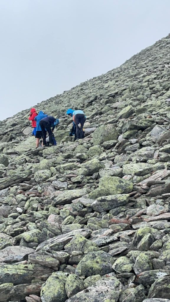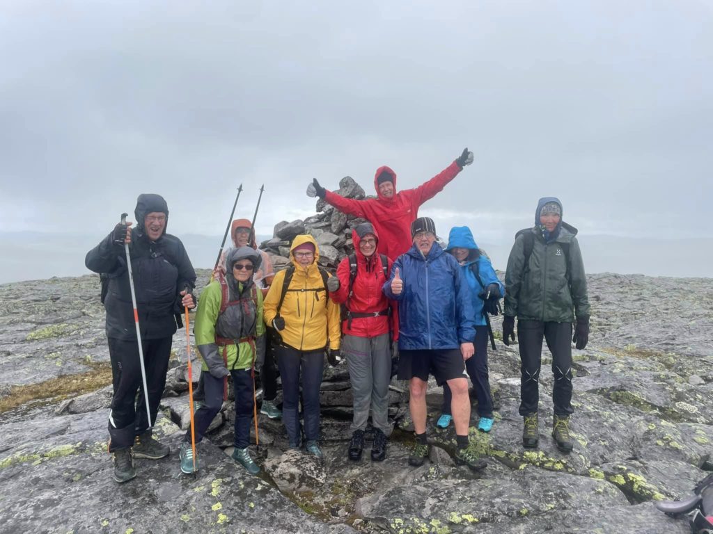 Ny TI PÅ TOPP tur, Gråhøgda 1436 moh. 20 km fra Undseth etter Spekedalsveien. Lettgått i starten, så en god bit med stein og blokk. Kom ei god kald regnskur med vind på toppen, vi fikk opp tang og skilt, 10 stk fikk klippet og vi startet på nedturen, dog i rimelig feil retning etter beskjed fra turleder Johan Ragnar