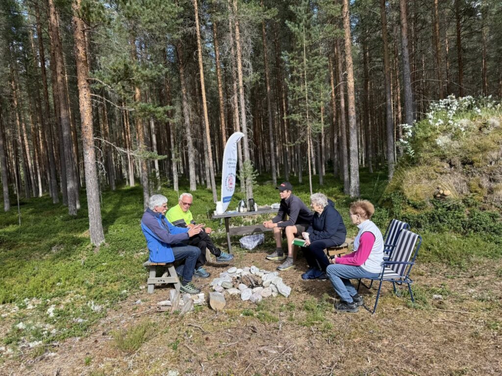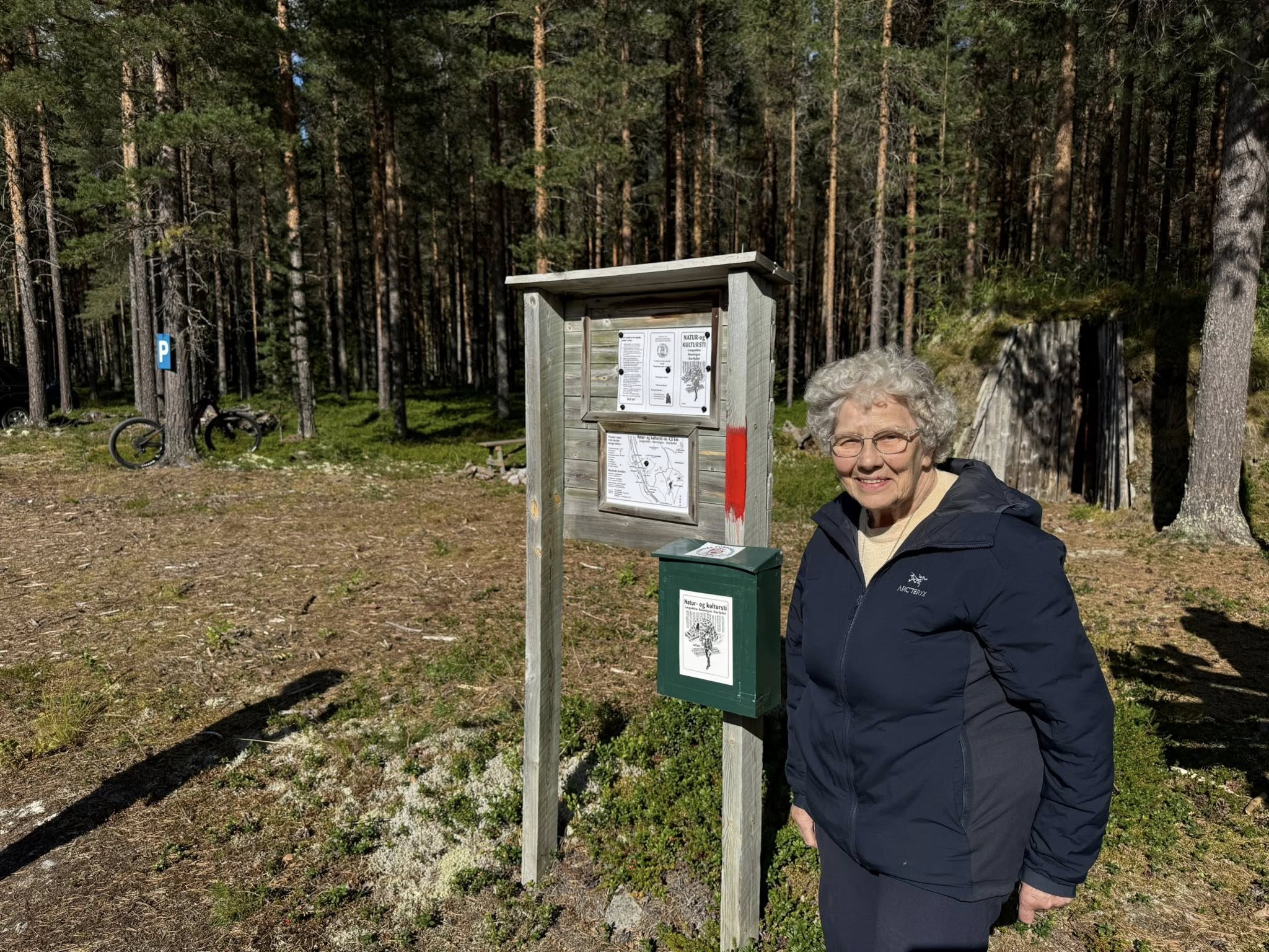 Det var Grete Langodden som hadde ideen til stien. I efta fortalte Grete oss historien bak stien, for 6 fremmøtte med god varm sol med litt vind. På