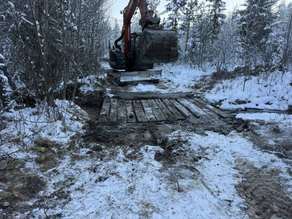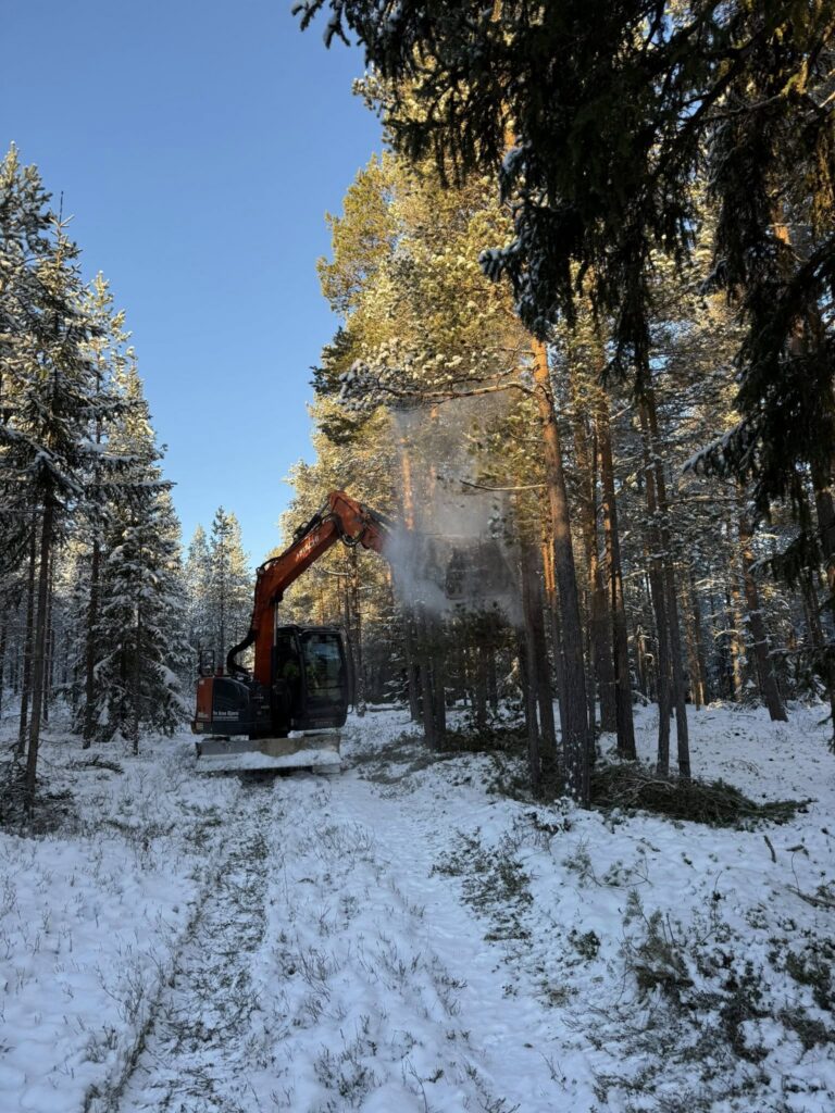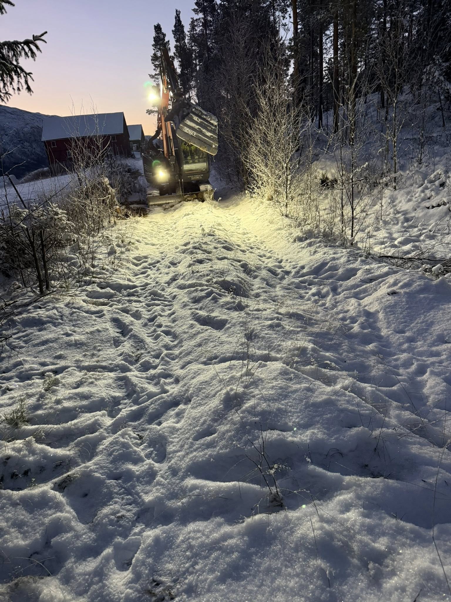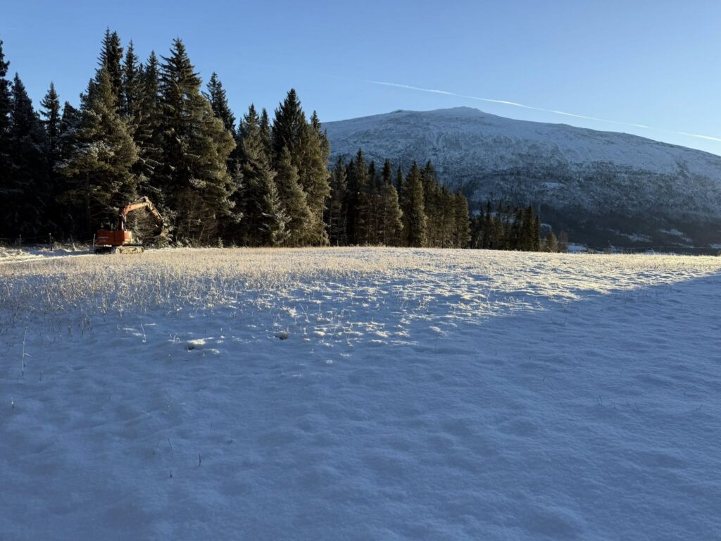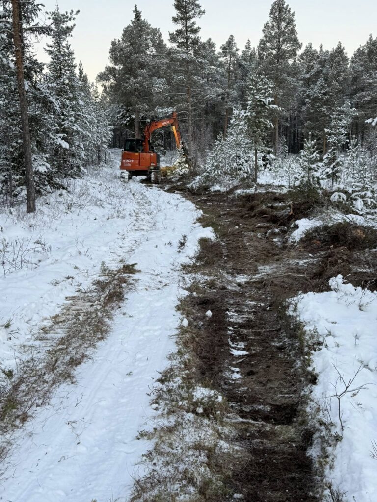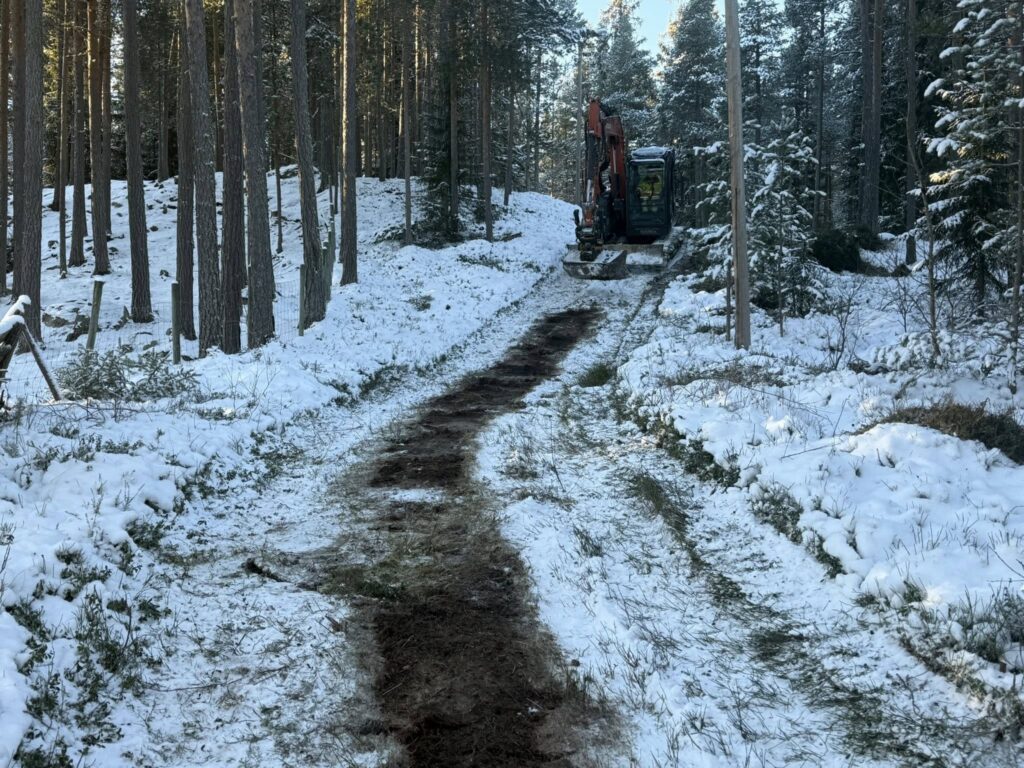 Det er gjort en god jobb de siste dager med å utbedre løypa fra Basheim og oppover lia. Rydding for hånd i går med å ta bort mindre tre og kvister. I dag med mange timers jobb med gravemaskin, meget flott jobb av Per Arne Bjørn. Tatt bort kanter og ujevnheter og rettet opp traseen. Laget en klopp over en liten bekk som nesten aldri fryser ved Sivilmoen
