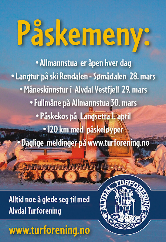 Vi har måttet AVLYSE turen pga. svært vanskelig skiforhold i Sølendalen og Gloføyken. Av erfarne lokale fjellfolk er vi anmodet sterkt om å ikke ta turen – hvilket som vi selvsagt tar til etterretning. Ny tur neste år!