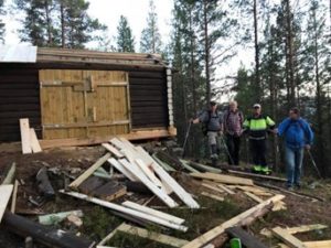 Endelig er vi i gang med restaurering av skogsbua i Høståsen. Nytt gulv og åser både oppe og nede er skiftet av tømmermester Svein Olav Nymoen