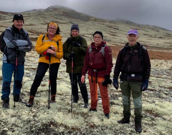 5 første gangsturgåere «Ti på topp « besteg i går 10. oktober Skardhøa ( mellom Sølndalen og Folldal) og har ...