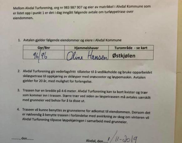 AVTALE OM SKIKØYPETRASÉ. Vi sendte ut tilbud om dette i oktober/november i fjor til alle grunneiere som berøres av vår ...