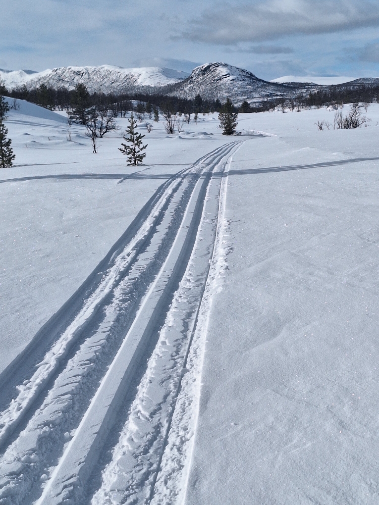 Olav Strypet har i dag kjørt med snøscooter Gardvikåsen-Rødalen-Strålsjøåsen – se bilde under😀