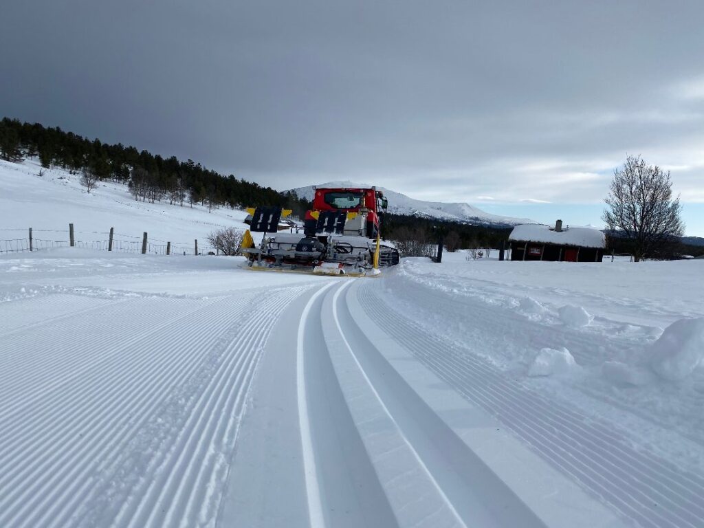 Kommet såpass med snø at SPORIL nå endelig kan få sesongdebutere. MEN hun vil ikke starte…. muligens tomt batteri. Vi har satt «krisestab», satt på lading og motorvarmer mm., og alt tyder på at kl 14.00 er hun i sving. I dag onsdag tråkker hun deler av lysløypa på Steimoegga.